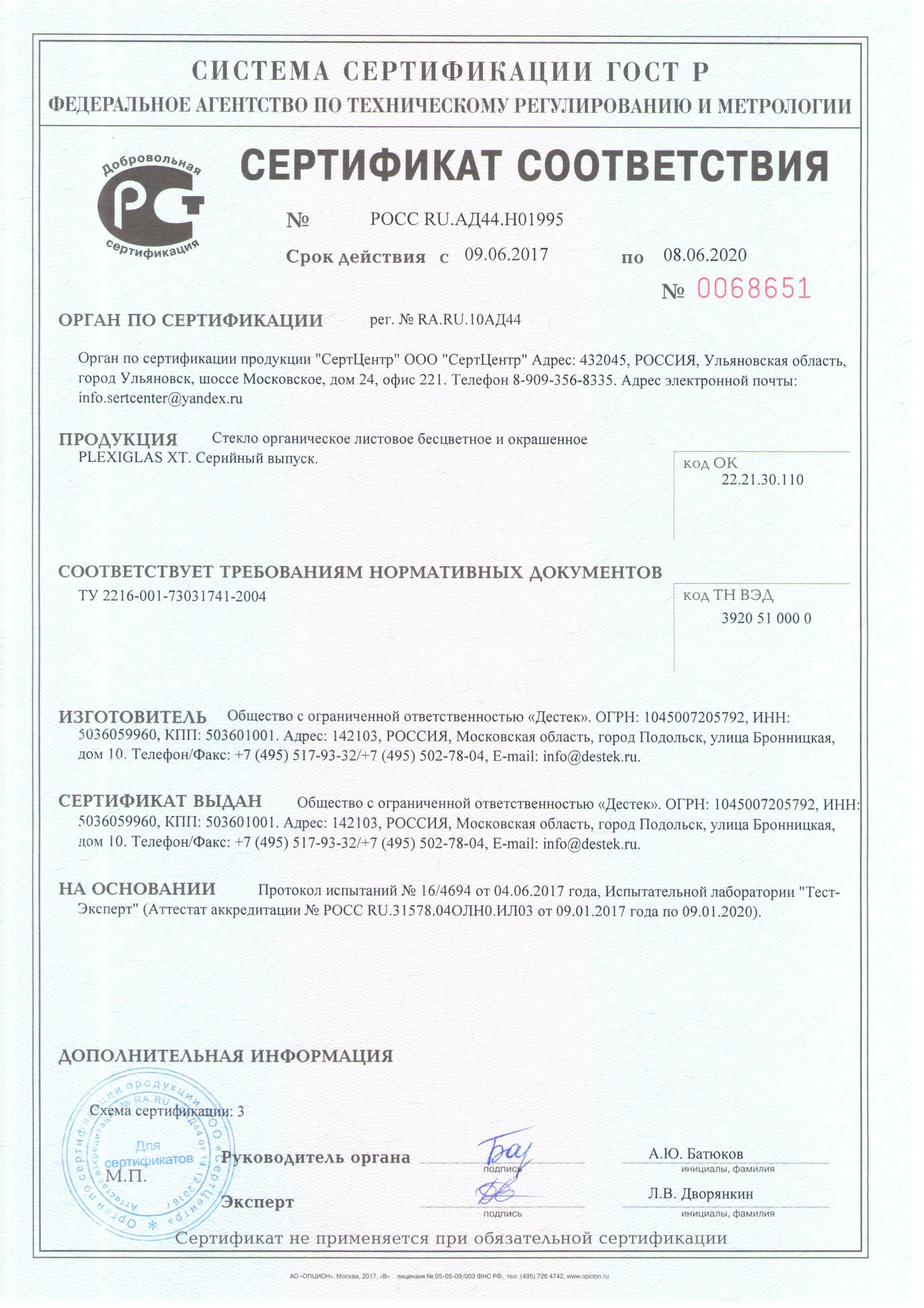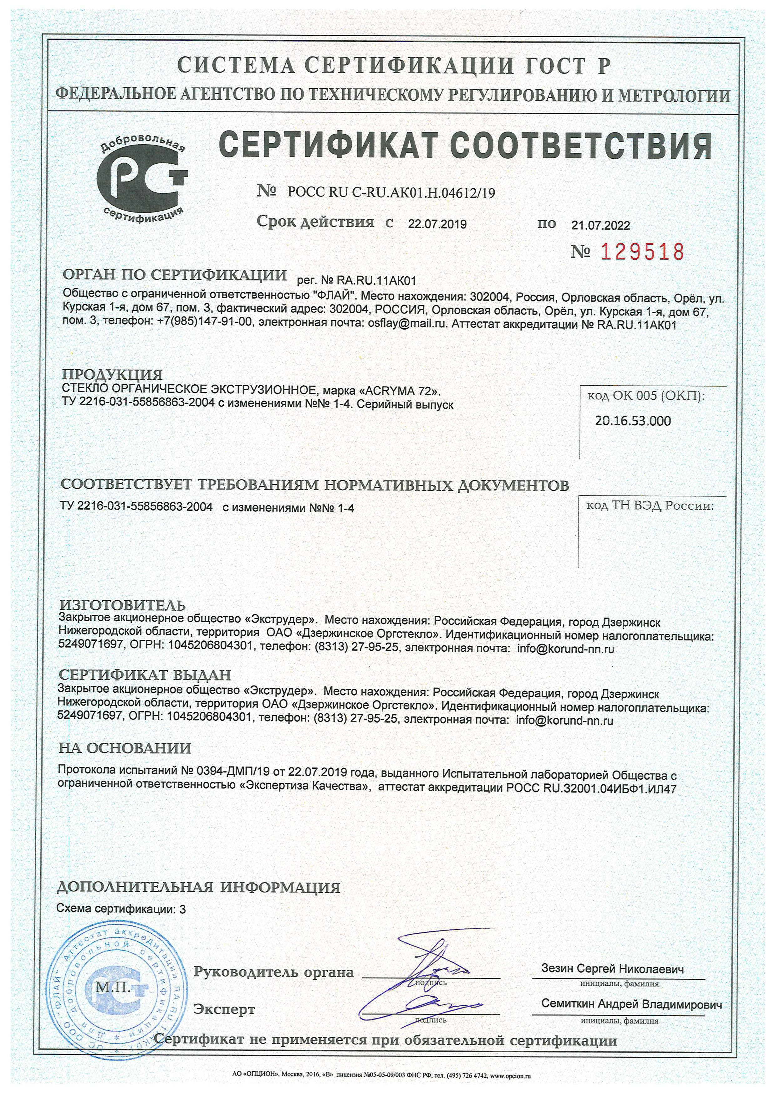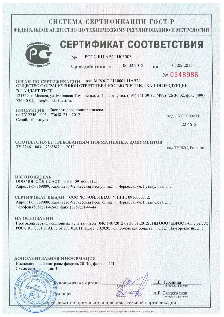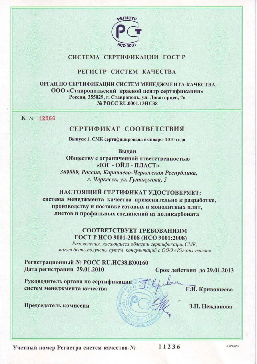 Сертификат соответствия ГОСТ Р 56712 Панели многослойные из поликарбоната
