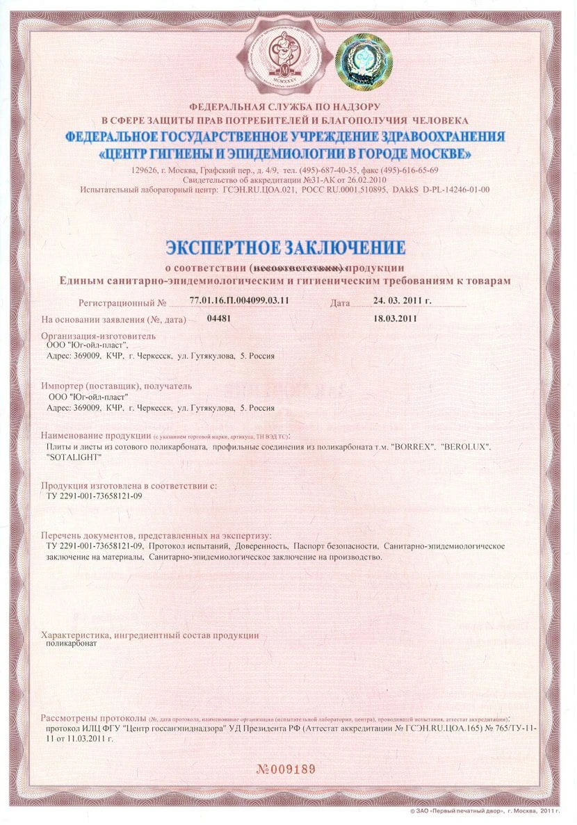 Сертификат пожарной безопасности сотовый поликарбонат и профильные соединения