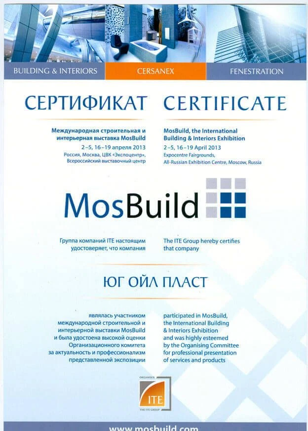 Сертификат соответствия итальянской линии «UNION» требованиям технического регламента